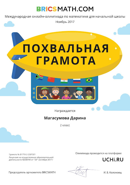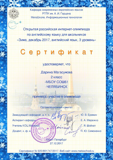 Победители международного конкурса по английскому языку "Британский бульдог". Аня - 1 место! |
