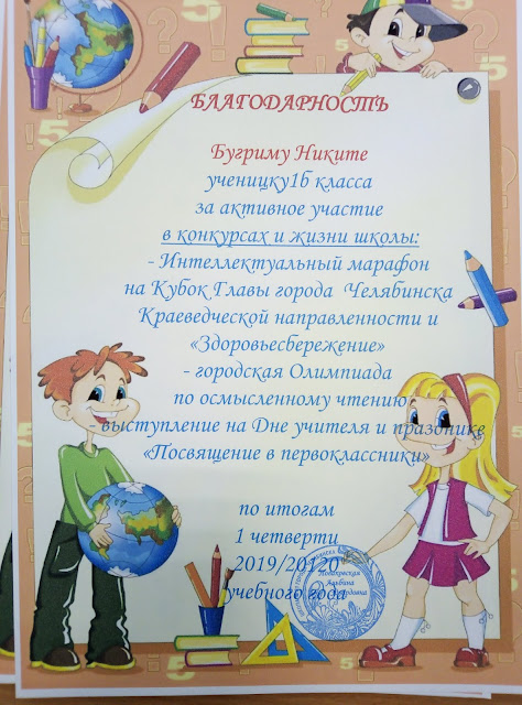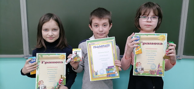 | Благодарственные письма за участие в конкурсе получили Кирилл Пустовойтенко (1б класс) и Света Нуждина (2б класс). |